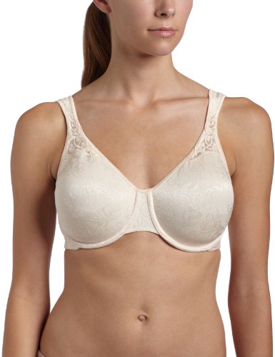 Cottony floral jacquard print with embroidered motif. Seamless cups with cottony lining for next to skin softness. Cushioned straps for shoulder comfort. Hidden Playtex Secrets shaping sling and comfort underwire for lift and support. Stay-Put straps that