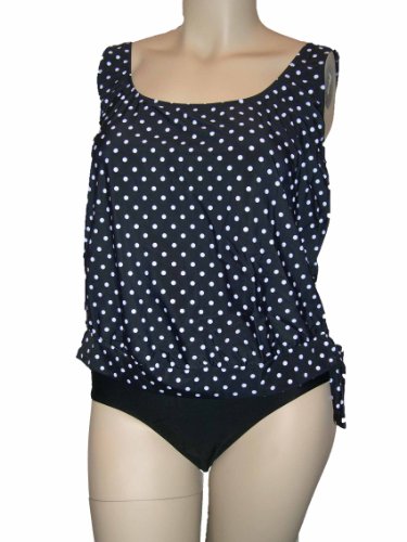 Womens Plus Size Beach Native Black White Dot Tankini, Bikini Briefs 16w-24w (24w, Black/White)