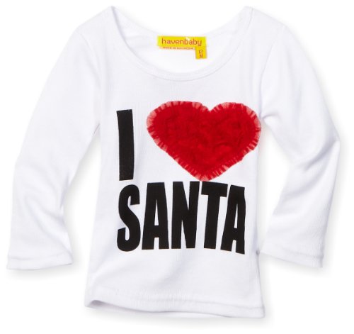 HAVEN BABY Baby-Girls Infant Long Sleeve I Love Santa Script Tee, White, 18 Months